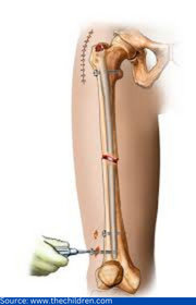Metal plates and screws: If the fractures extend into either your hip or knee joints, then an intramedullary nailing may not be a viable option and will require metal plates and screws.